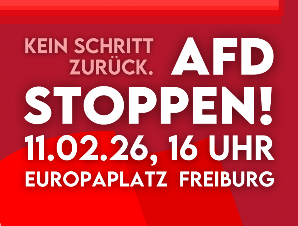 Am 11.2. startet die AfD Freiburg ihren Wahlkampf im Bürgerhaus Zähringen – ein Anlass, um gemeinsam auf die Straße zu gehen! Die AfD ist der parlamentarische Arm einer in Teilen faschistischen Bewegung. Die kommende Landtagswahl will sie nutzen, um sich als besonders bürgernah und “vernünftig” zu inszenieren. Als angebliche Gegnerin des politischen Mainstreams stellt sie sich selbst als Stimme der unzufriedenen Mehrheit dar und bekommt damit immer mehr Zuspruch. Mehr denn je müssen wir jetzt zeigen: nicht mit uns!