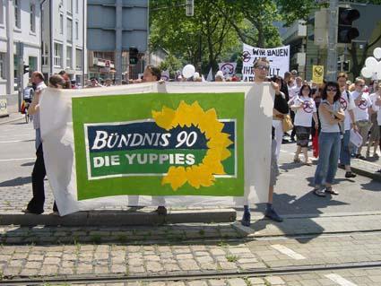 Am 1. April 2006 ist bekannt geworden, dass Oberbürgermeister Dieter Salomon (Gründe) zusammen mit seiner Ratsmehrheit anstrebt, die Bestände der städtischen Tochter Freiburger Stadtbau (FSB) an einen privaten Investor zu verkaufen. Es folgten Monate des Widerstands von unten – am Ende stand ein großer Erfolg: